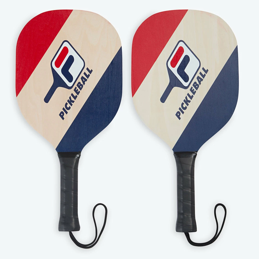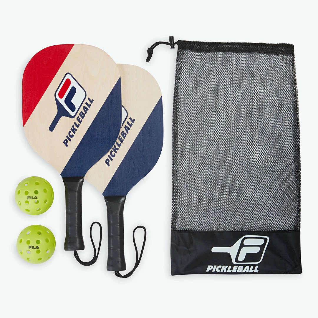 The Fila Pickleball Starter Set has everything you need to get your game on. The kit includes two wooden paddles, two outdoor pickleballs and a mesh bagΒ to convenientlyΒ carry to the court. The paddles are made of durable wood construction for power and longevity and feature balance weight distribution with a large sweet spot. The paddles are lightweight and feature a comfortable, contoured grip to give you the best in-hand feel.Β