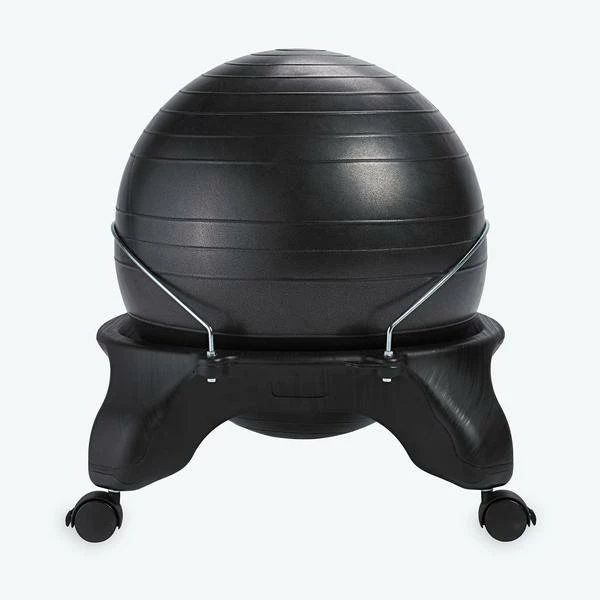 The Backless Balance Ball® Chair will engage your core, relieve pain, and help you breathe better without the temptation of resting your back and losing your posture. Small micro-movements caused from balancing on the ball will stimulate blood flow, keeping your core and back constantly engaged. Chair includes a removable 52cm balance ball, air pump, base with two secure ball holders, and lockable caster wheels for easy movability.