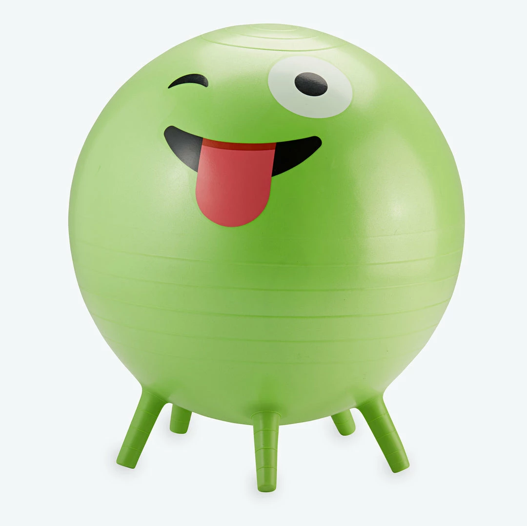 Sitting was never so much fun with these stay-n-play balls with silly smiles! The kid-sized 45cm inflatable ball has built-in no-roll stabilizing legs that encourages healthy posture while keeping the body active and the mind engaged. Ideal for ages 5-7. Includes an easy inflation pump.