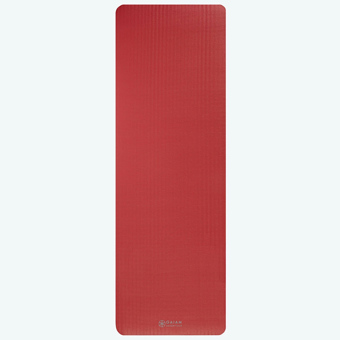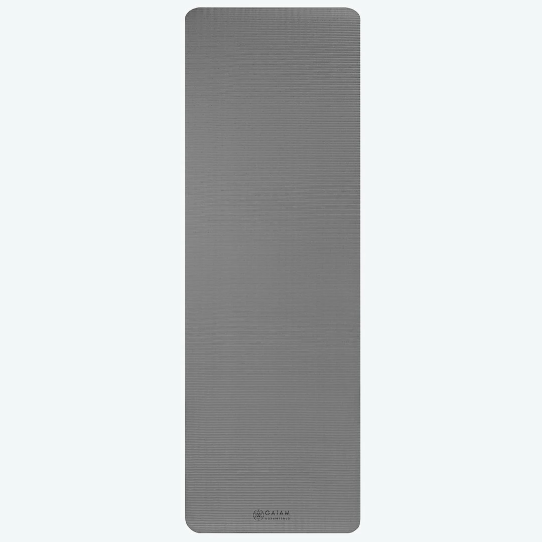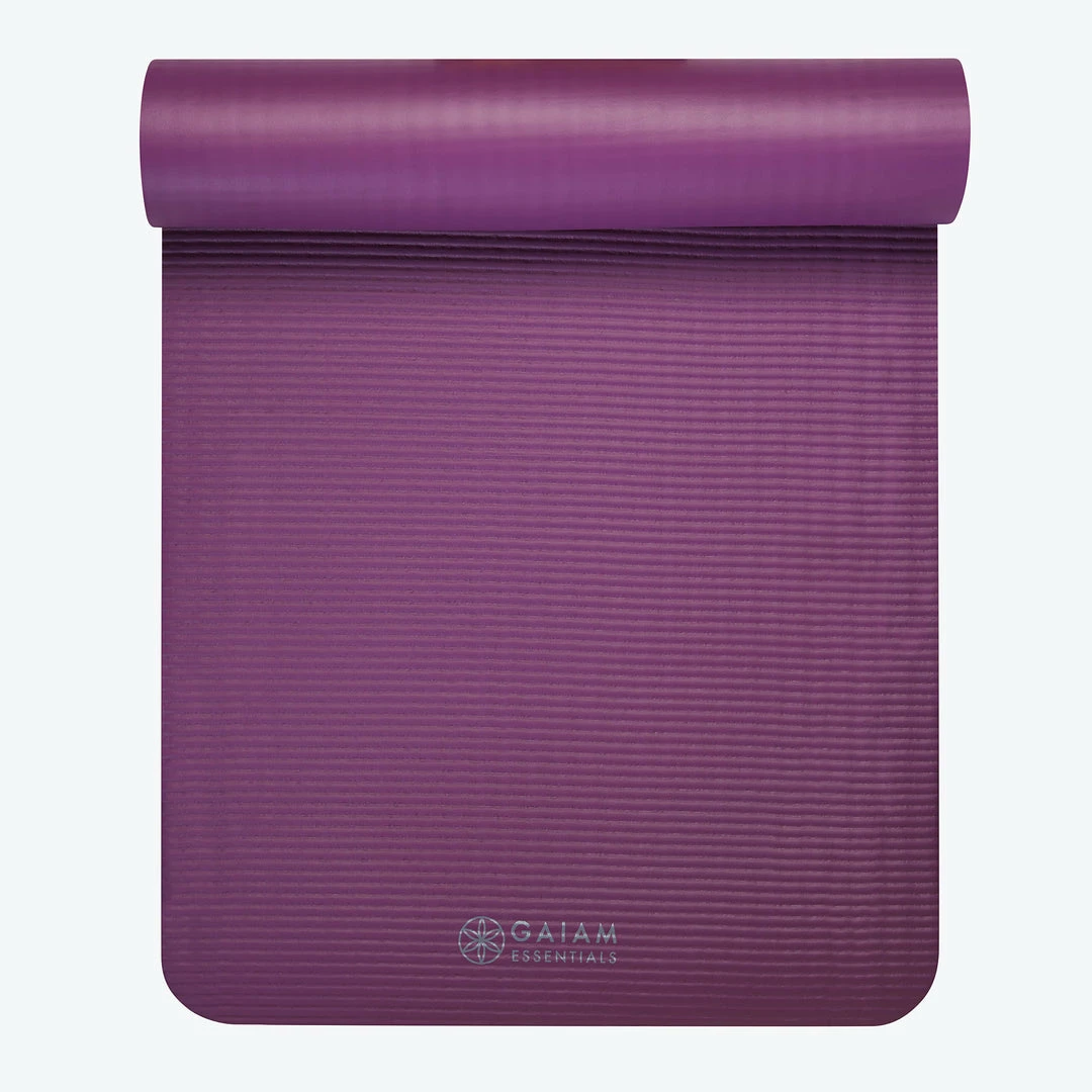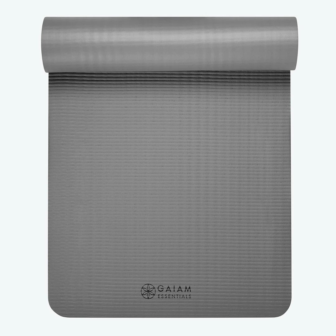 Get the ultimate comfort, support and style during any exercise with these 10mm thick Gaiam Essentials Fitness Mat. With non-slip ridges for superior traction, you will stay put during ab work, toning, stretching, and more while using our fitness mat. This mat also comes with a nylon carry strap for easy portability.Β