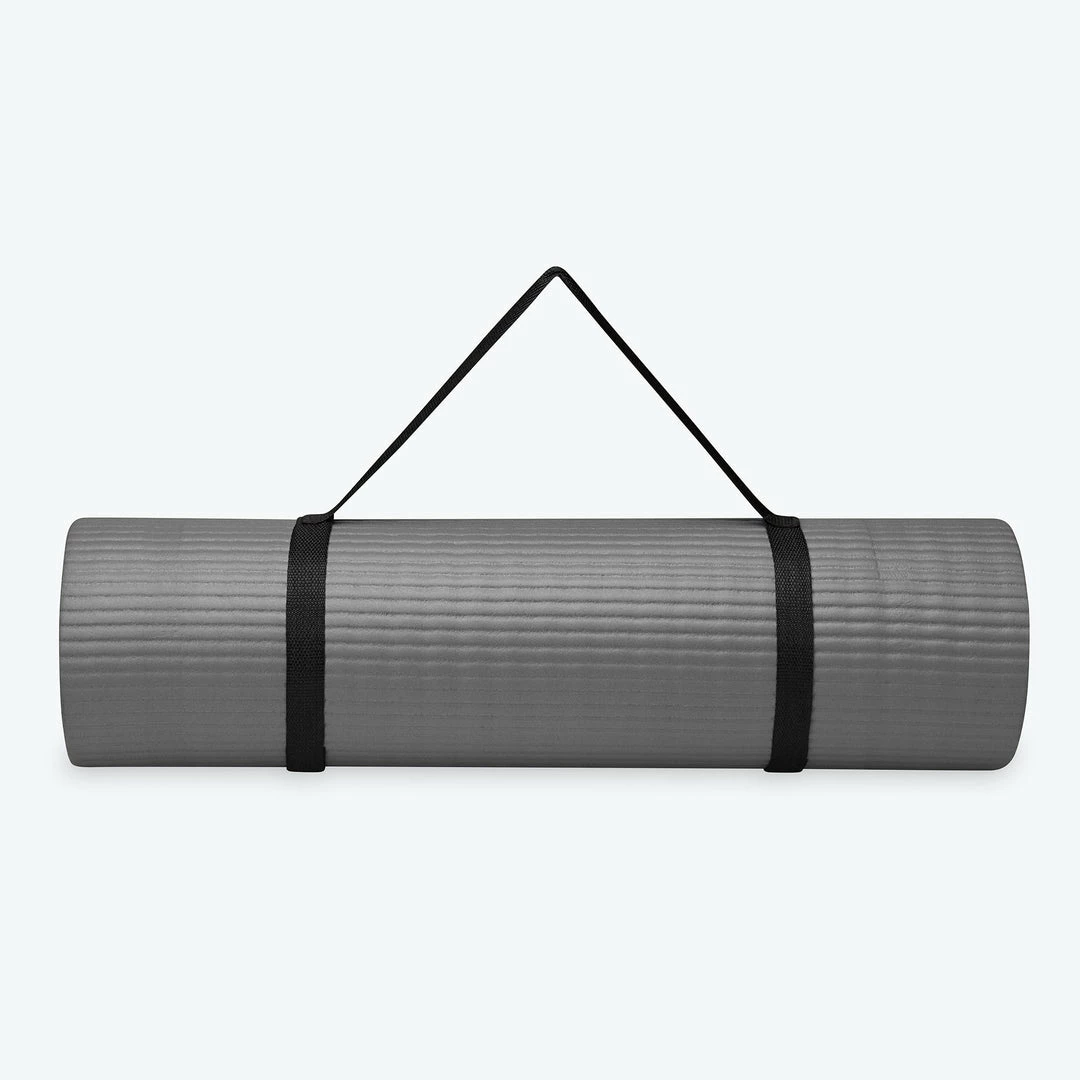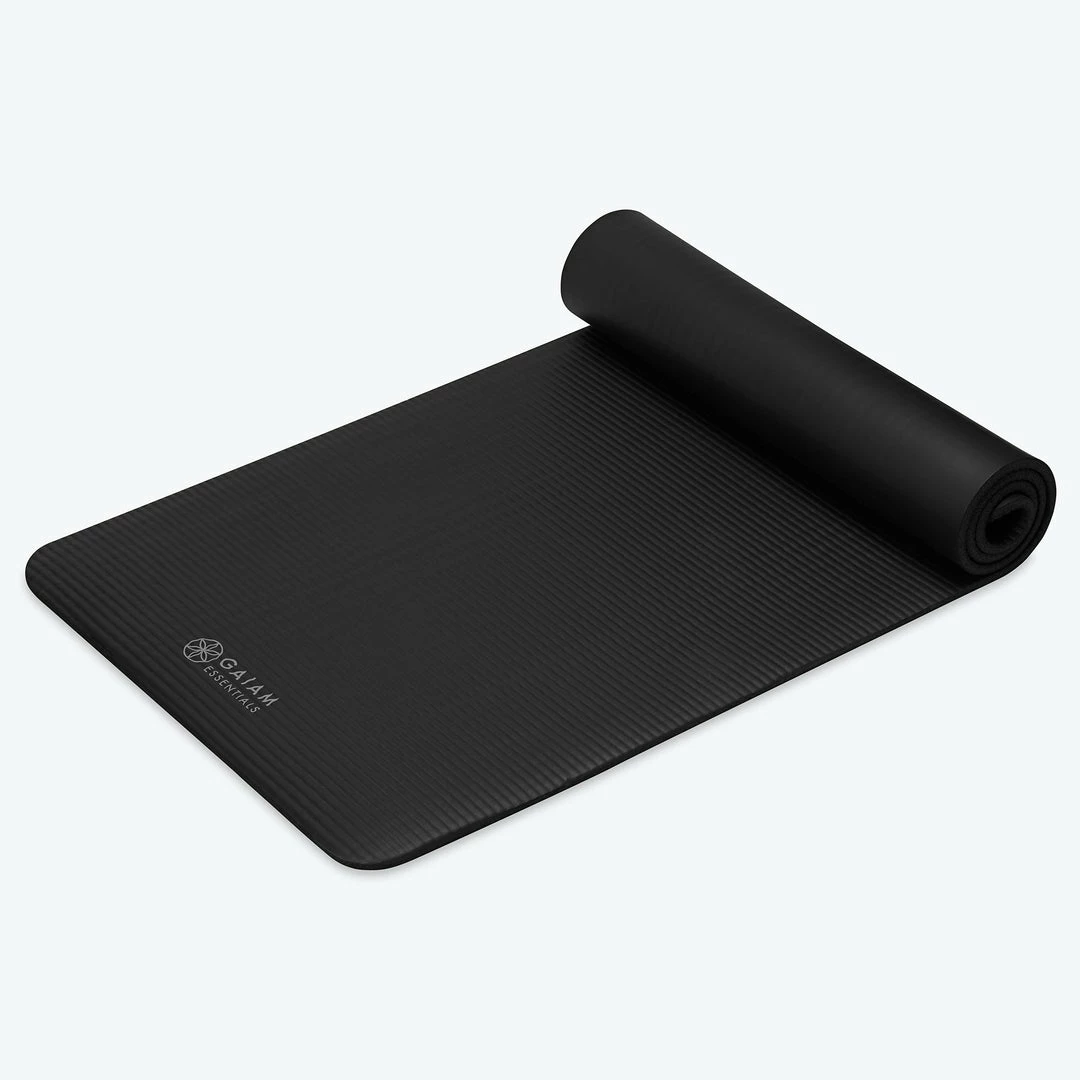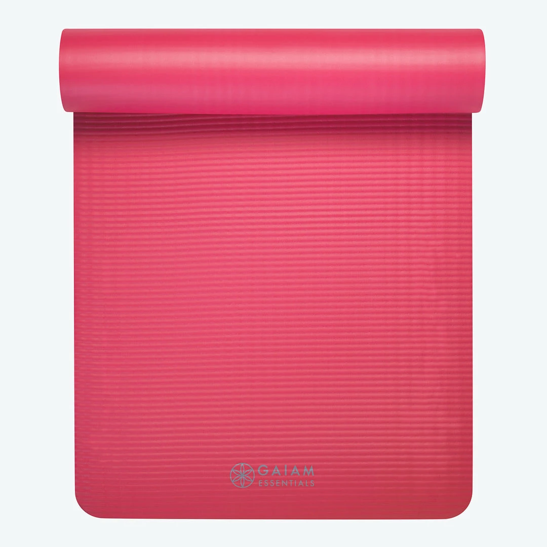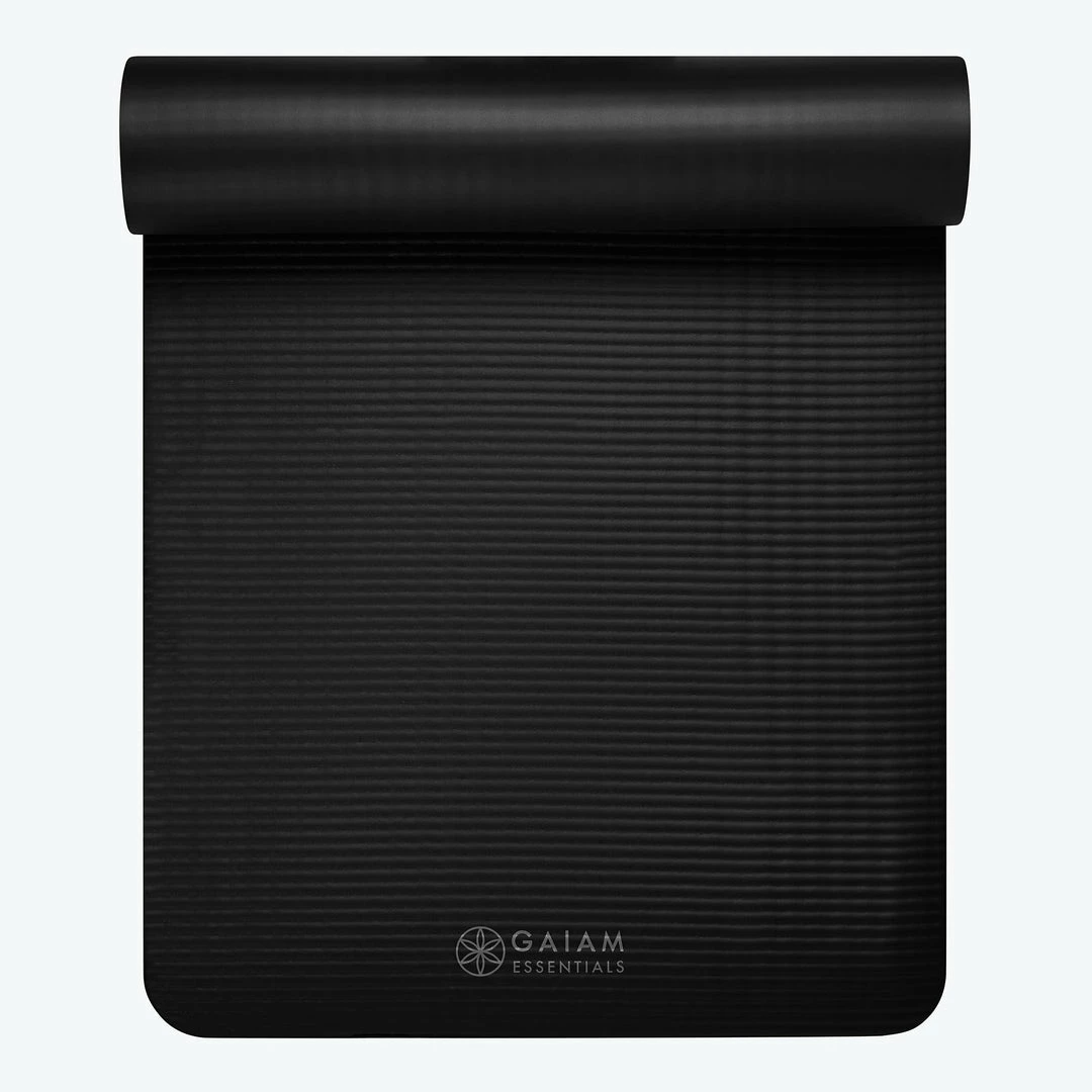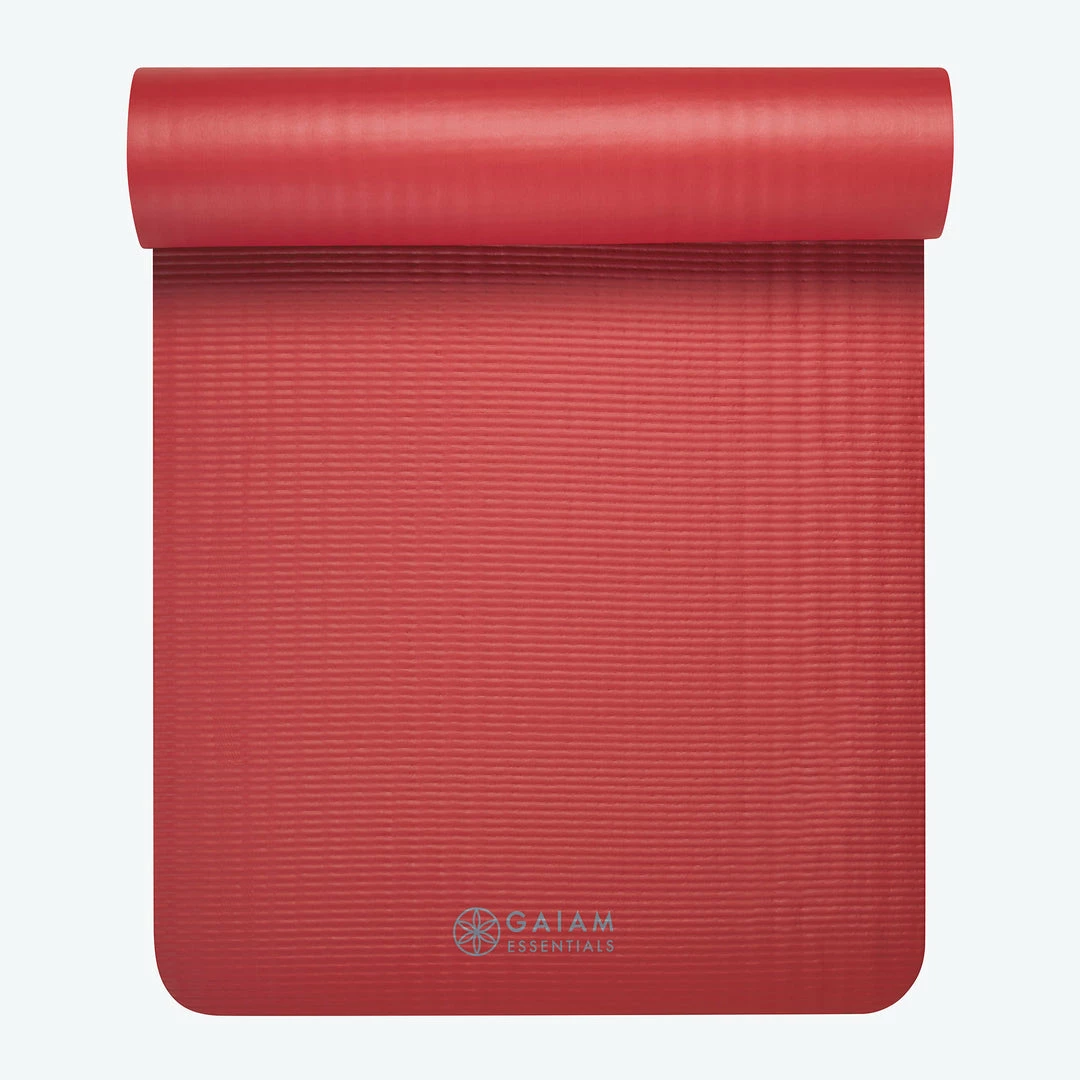 Get the ultimate comfort, support and style during any exercise with these 10mm thick Gaiam Essentials Fitness Mat. With non-slip ridges for superior traction, you will stay put during ab work, toning, stretching, and more while using our fitness mat. This mat also comes with a nylon carry strap for easy portability.Β