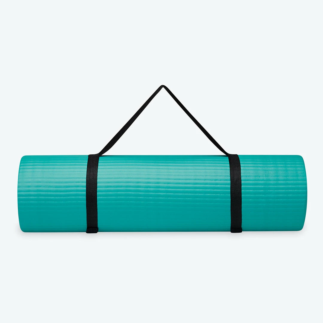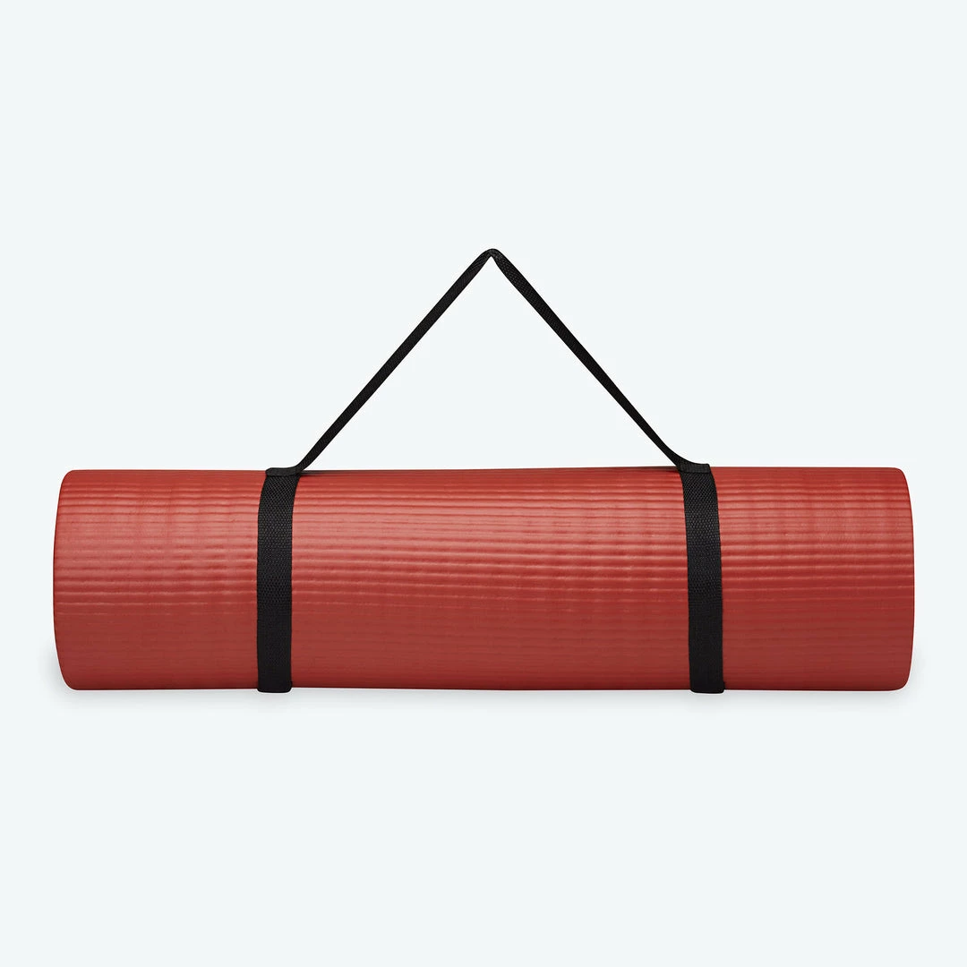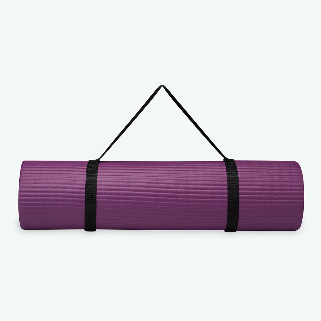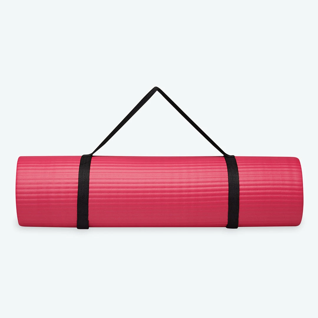 Get the ultimate comfort, support and style during any exercise with these 10mm thick Gaiam Essentials Fitness Mat. With non-slip ridges for superior traction, you will stay put during ab work, toning, stretching, and more while using our fitness mat. This mat also comes with a nylon carry strap for easy portability.Β