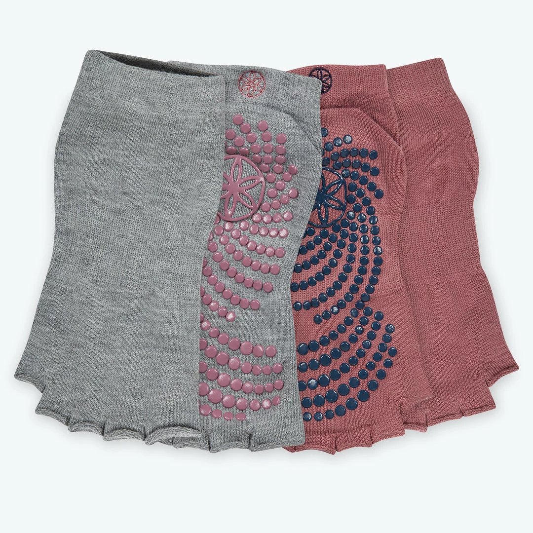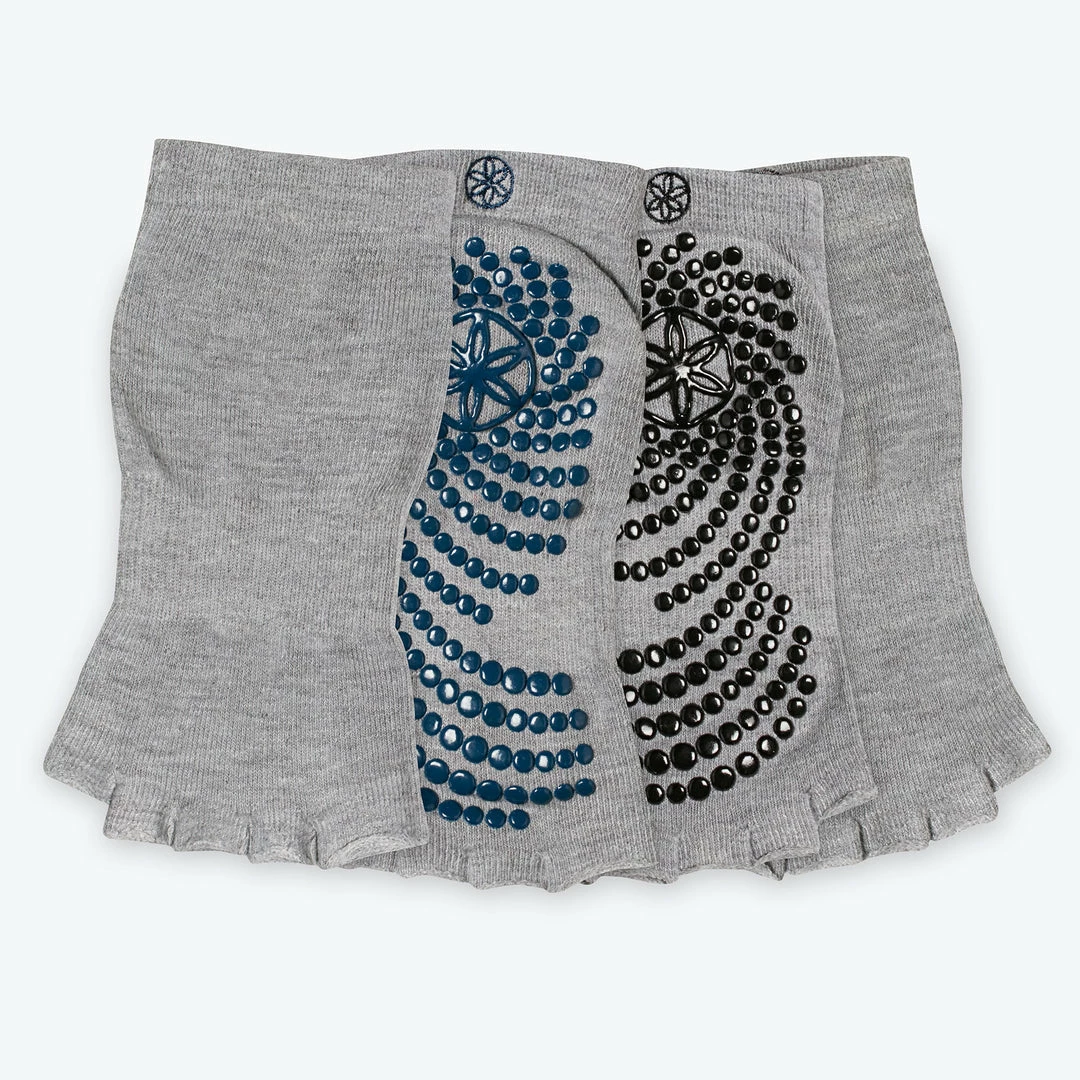 This 2-pack of Grippy Toeless Yoga socks will let you take your yoga practice anywhere, on or off the mat.Β The targeted traction zones provide no-slip grip on any surface, while the open design allows toes to spread naturally for better tactile feel and balance. Socks can be used with a mat for added grip.
