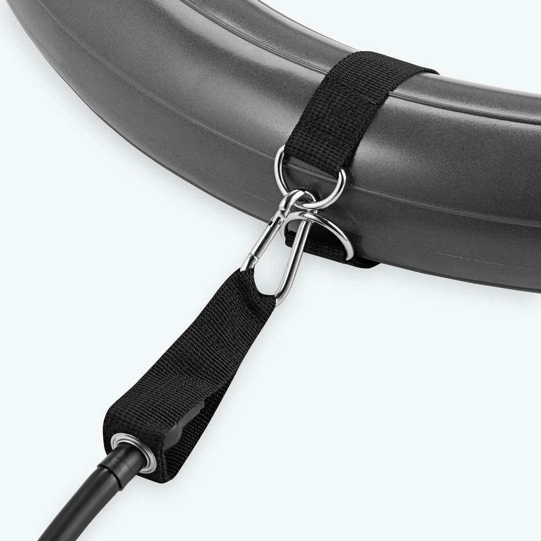 Train harder and smarter with this all-in-one fitness kit. This kit includes a 65cm stability ball, inflatable base, 2 resistance cords, and an inflation pump to provide you with everything you need to get a total body workout from the comfort of your own home. Sculpt and tone your abs, arms, and legs with the help of the resistance cords all while improving your posture and balance on the stability ball. The inflatable base holds the straps secure and keeps the ball from rolling away when not in use.