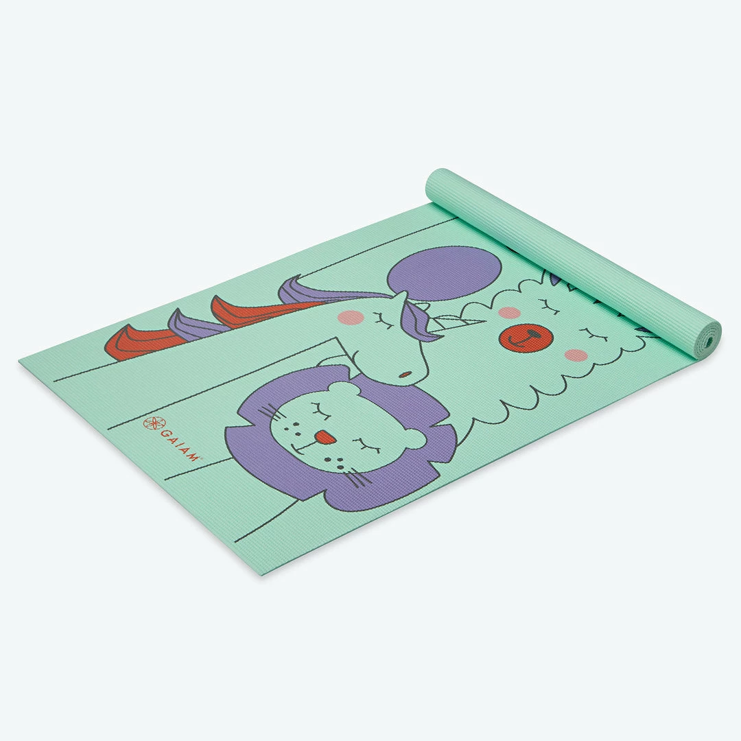 This kid-sized Animal Surprise Yoga Mat is perfect for your little yogi. With all-grip and no-slip, your little one will stay put while bending into Lion pose or grounded during Unicorn. This mat is also latex and 8P free, and comes with our lifetime guarantee. Ideal for ages 5-8.