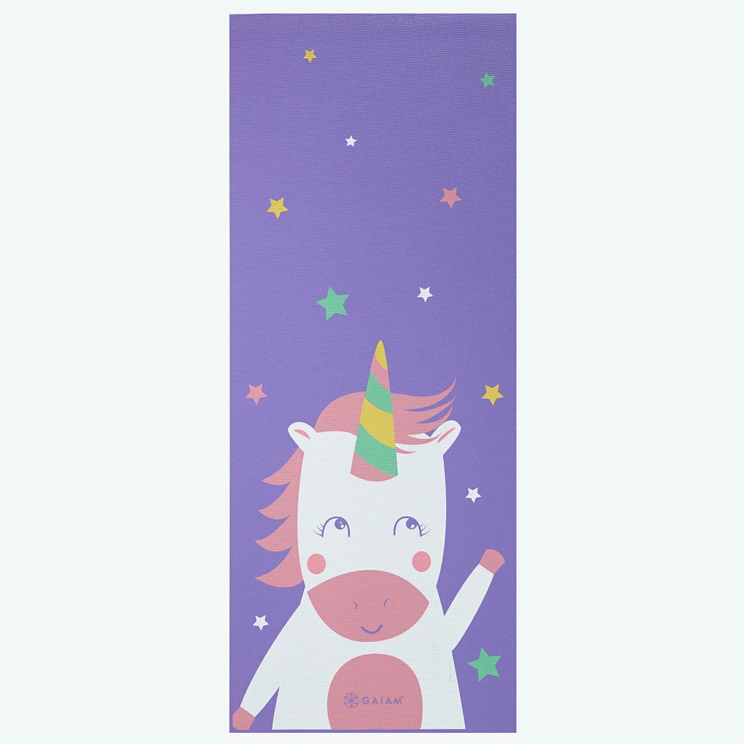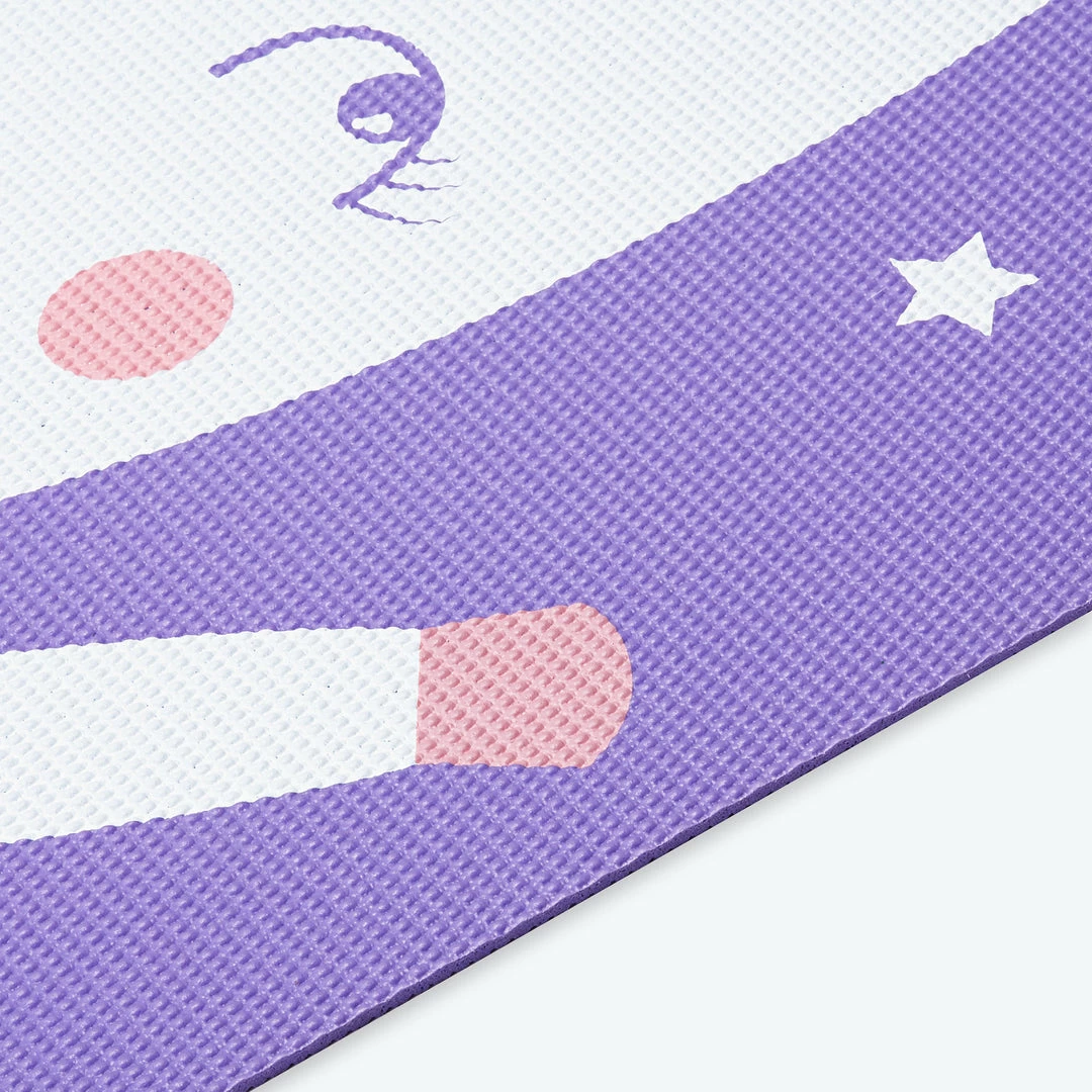 The Kids Twinkle Toes Yoga Mat features a friendly unicorn companion, ready to join your kiddo in yoga poses or relaxation time. Our kid-friendly designs keep kids interested and engaged during yoga. This kid-sized yoga mat is 3mm thick and features a βstickyβ textured surface to help keep little hands and feet grounded during poses. Made of latex-free PVC, itβs also free of the six most harmful phthalates.