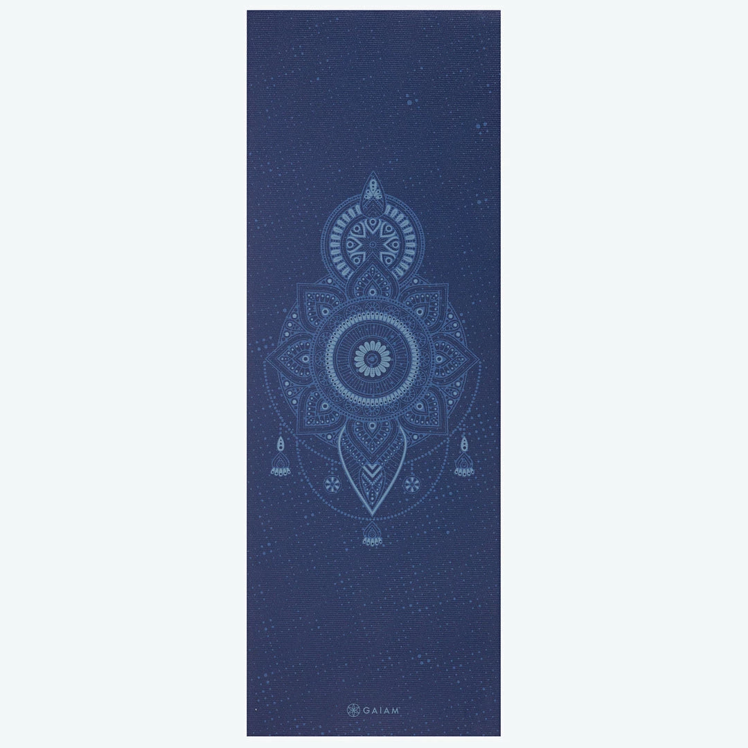 The Premium Celestial Blue Yoga Mat will have you finding inspiration in the stars. Made of latex-free PVC, this ethereal celestial-inspired mat is 6mm thick for supreme cushioning and features a textured, βstickyβ surface. Ideal for home or studio use and includes Gaiam’s lifetime mat guarantee.