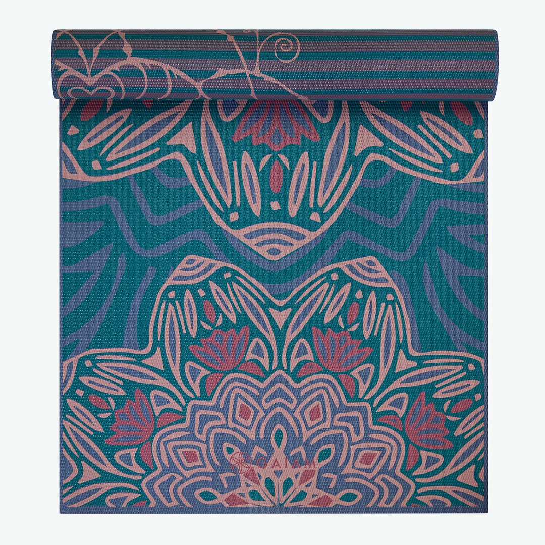 Express your yoga self with a two-sided matβjust select the design that best matches how you feel. Our Jade Salutation yoga mat is 6mm thick to offer plenty of cushioning, and the textured surface helps keep you grounded. Latex-free; made without the six most harmful phthalates.