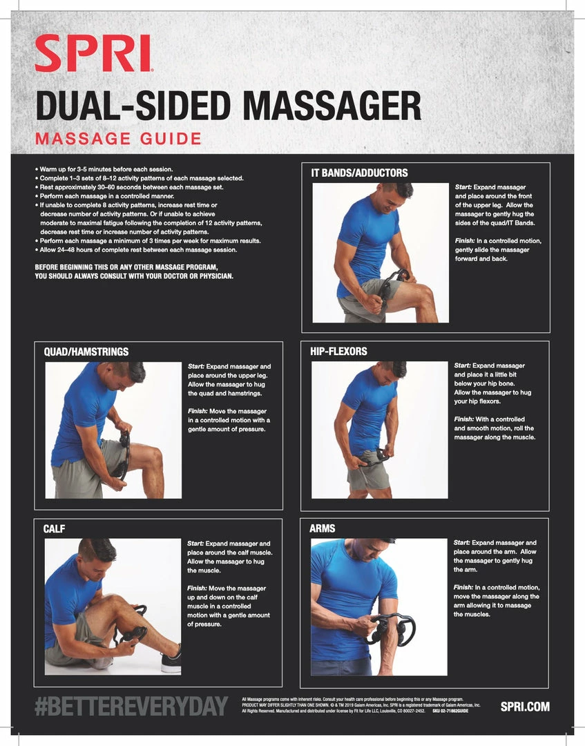 Less effort, more effect. Our leg massagerβs dual-sided design hugs both sides of your legs, covering more area faster. Use the double handles to apply the ideal amount of compression, letting the four textured rollers provide a deep massage as they move. Solid, resilient construction ensures consistent distribution of pressure.Β
