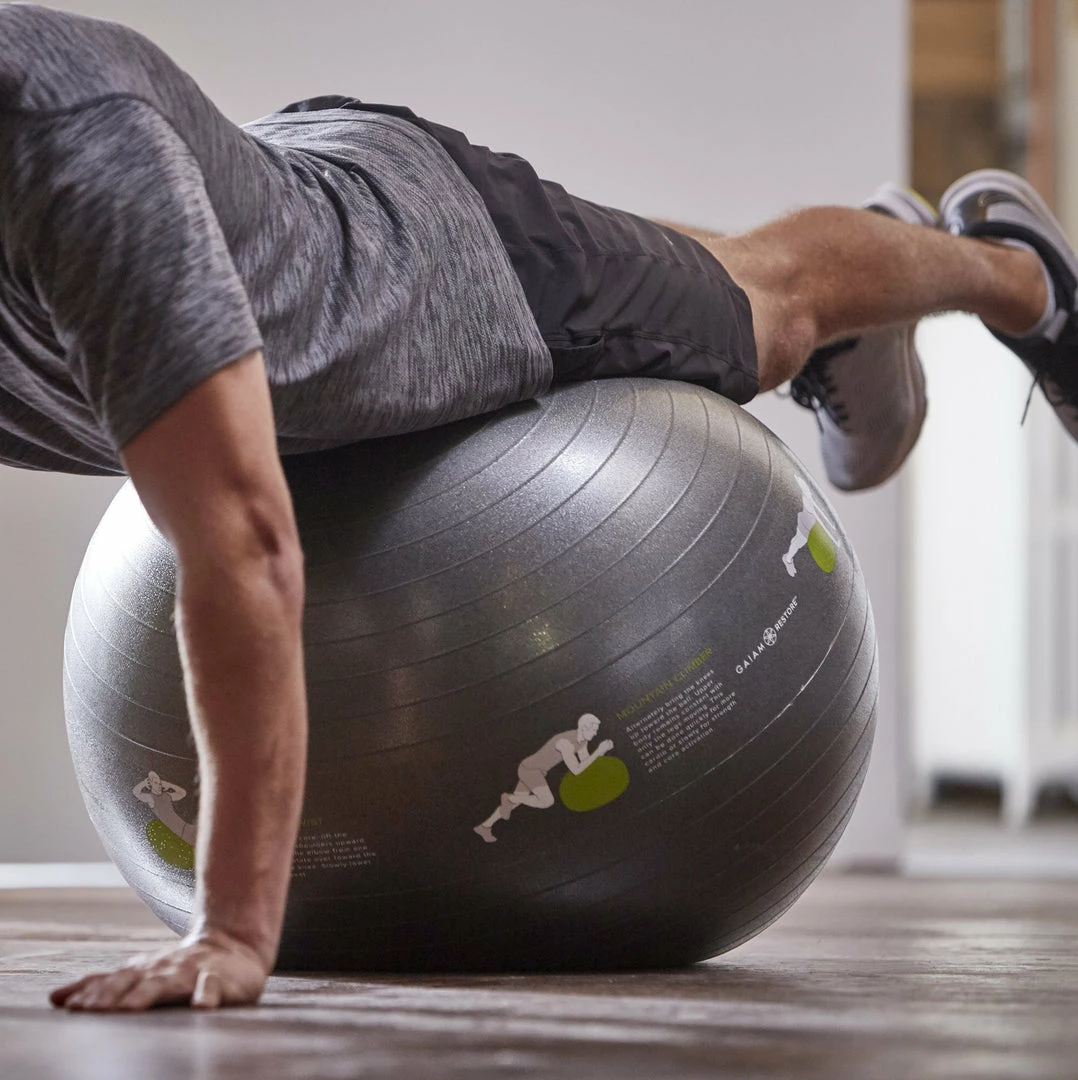 - Self-guided 65 cm stability ball