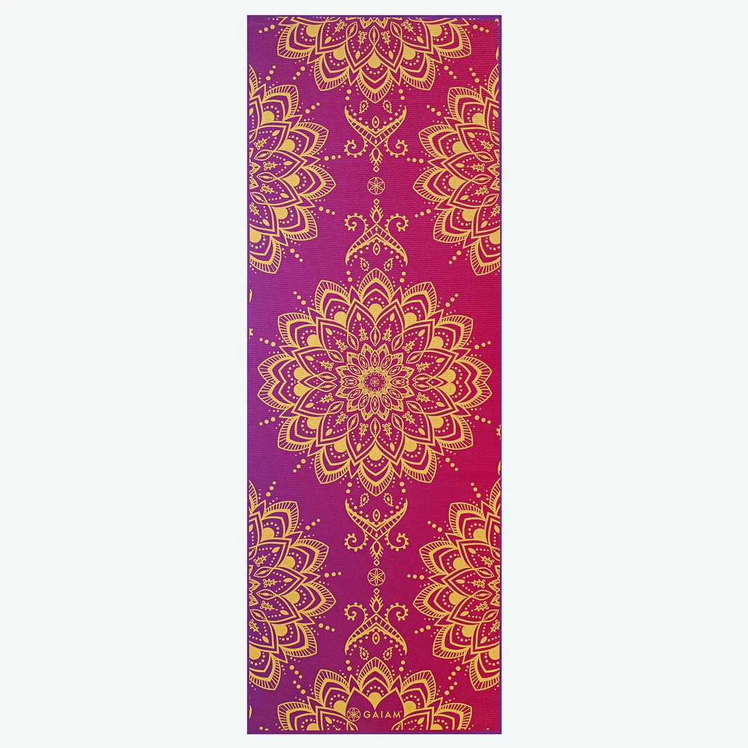 The two sides of this reversible mat add up to delicious vibrancy. On one side, a panoply of bright purples and yellows and, on the other, 2D lilies in lavender hues. The matβs 6mm thickness ensures comfort for even your longest sessions and its textured surface offers excellent βstickyβ traction. Made of 6P-free PVC, itβs non-toxic and made to last a lifetimeβwe guarantee it.