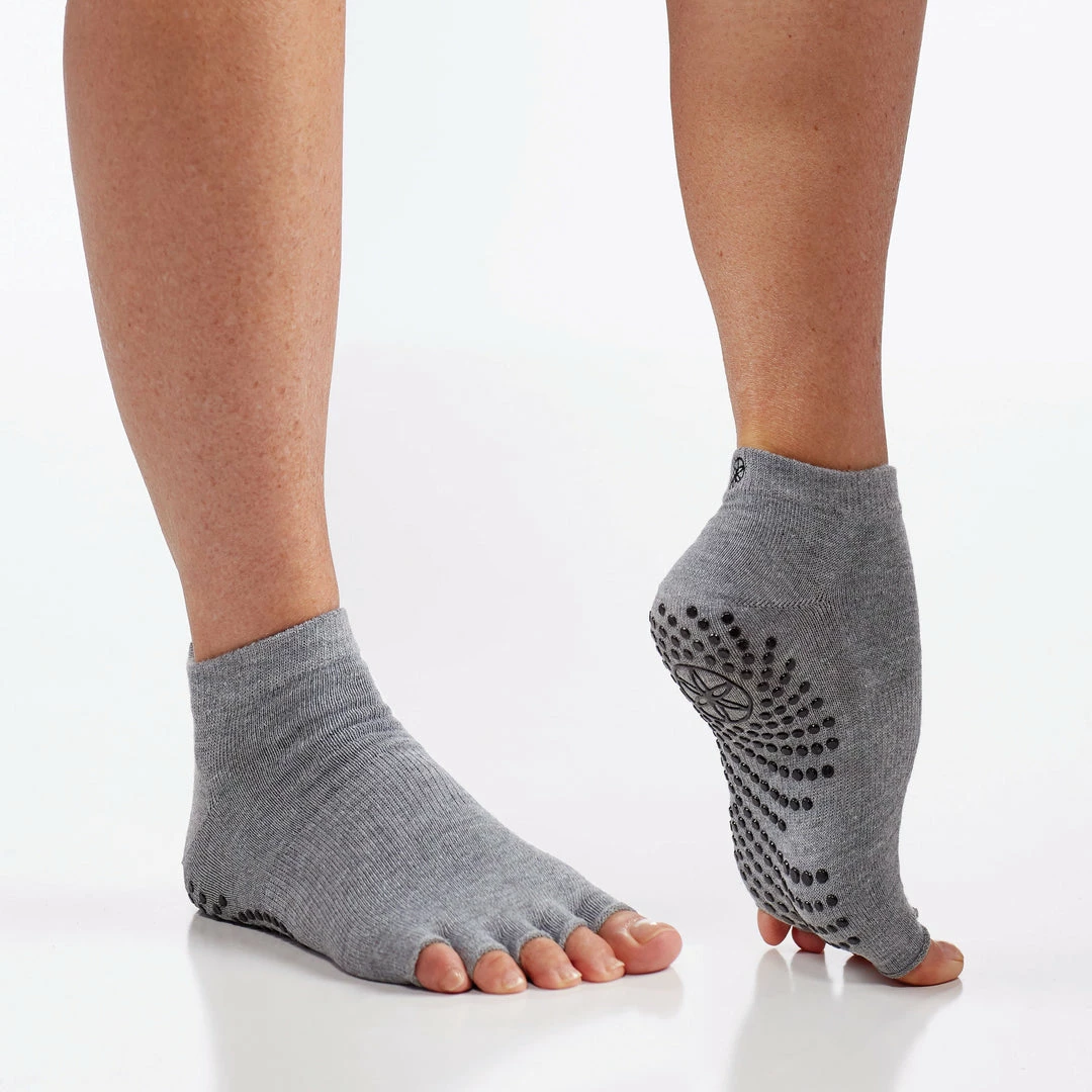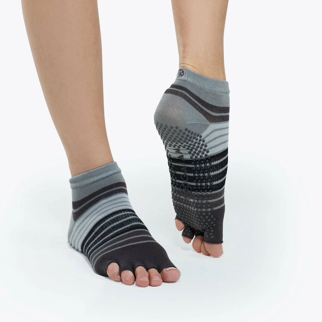 Take your yoga practice wherever you find yourself with these toeless Yoga Socks. The targeted traction zones provide no-slip grip on any surface, while the open design allows toes to spread naturally for better tactile feel and balance. Socks can be used with a mat for added grip.