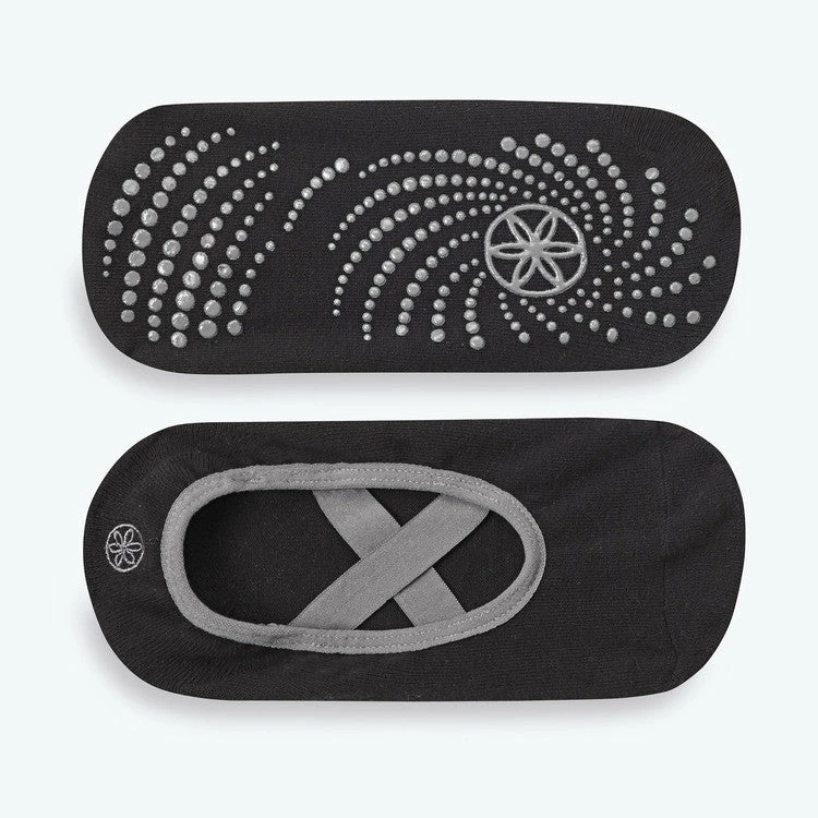 These full-toe grippy socks have a ballet-inspired design that is perfect for yoga, Pilates, barre, and dance. The grips provide a non-slip surface on or off the mat and the criss-cross top straps keep the socks in place during any pose.