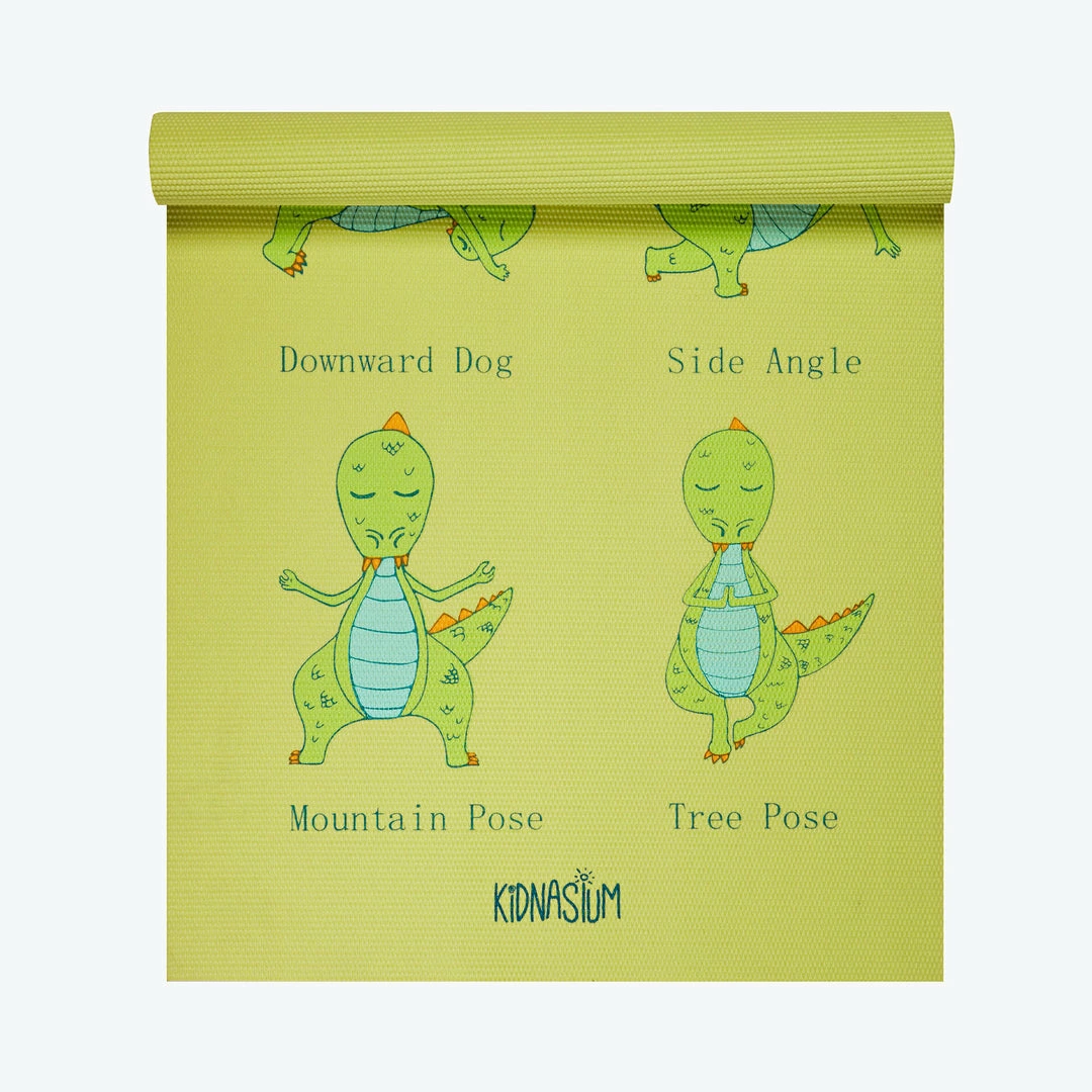 What kid wouldnβt love to do all the coolest yoga poses with a bunch of friendly zen dinosaurs? Give yours a jump-start when it comes to exercise and mindfulness with our adorable kid-sized Dino Poses Yoga Mat. Ideal for children between the ages of five and eight, itβs lightweight and easy to carry. Made free of latex and the six most harmful phthalates.