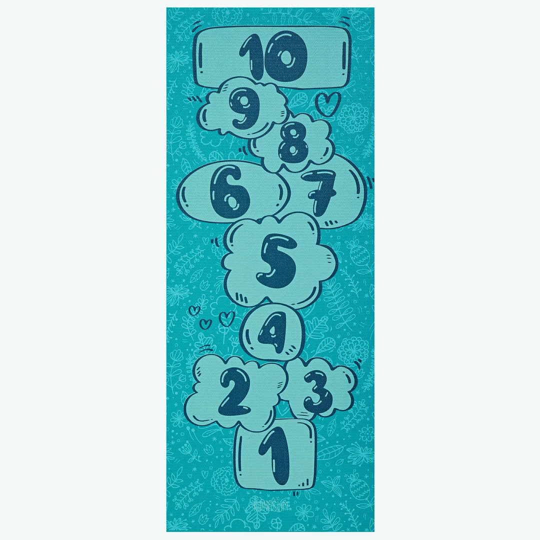 The Kidnasium Hopscotch Yoga Mat is designed to keep your little one active and their minds engaged! Your kiddo can skip and hop to the classic game of hopscotch and then lay on the mat’s soft and cushioned surface for some quiet time or stretching after. Sized especially for kids aged 5-8, this 3mm-thick mat is lightweight and easy to carry. Made of latex-free PVC.