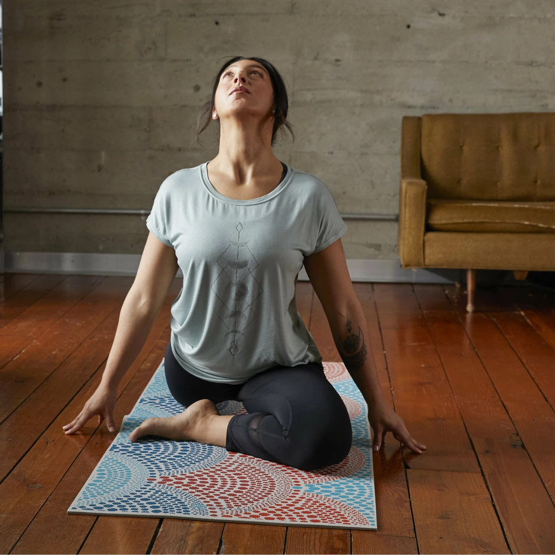 Our Alterra mat features calming colors with a design thatβs reminiscent of the oceanβs gentle waves, keeping you grounded and inspired as you flow through your practice. The supremely cushioning 6mm-thick mat is made of latex-free PVC thatβs also free of the six most harmful phthalates, and it features a textured, βstickyβ surface for sure footing every time. And, as with all of our mats, itβs covered by our exclusive lifetime yoga mat guarantee.