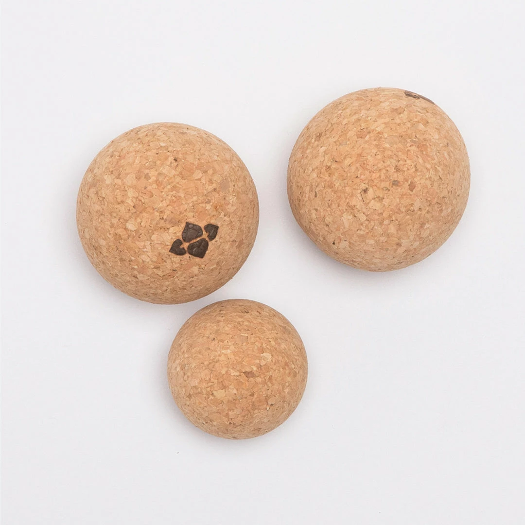 Become your own massage therapist with these three smooth and firm cork massage balls. Powerful self-healing tools, massage balls enhance joint movement, relieve pain, increase circulation and calm your nervous system. Lean into a wall, chair or the floor to create just the right pressure in those hard-to-reach spots. Experiment with the two unique sizes to find the exact pressure you’re looking for or roll the matching massage balls on either side of your spine for balanced release. Enjoy!