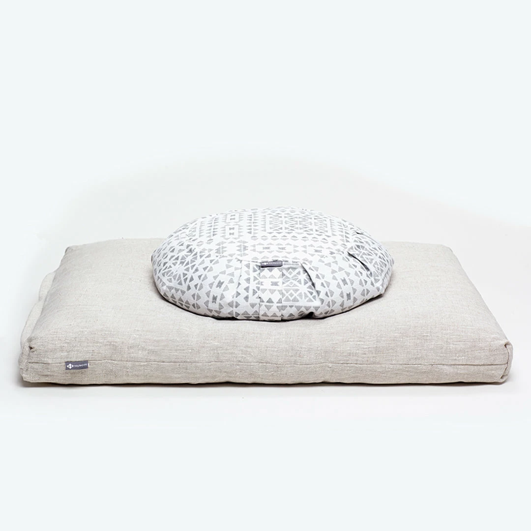 The Halfmoon Zabuton and Round Meditation Cushion are a traditional and timeless combination for meditation and casual sitting at home. TheΒ Zabuton is the perfect size and shape to support your seat, legs, and feet. This soft platform lifts you off the floor and provides extra cushioning for the feet and ankles. When used with the buckwheat-filled, malleable,Β Round Meditation Cushion, you have set yourself up perfectly for long periods of comfortable sitting and meditation.