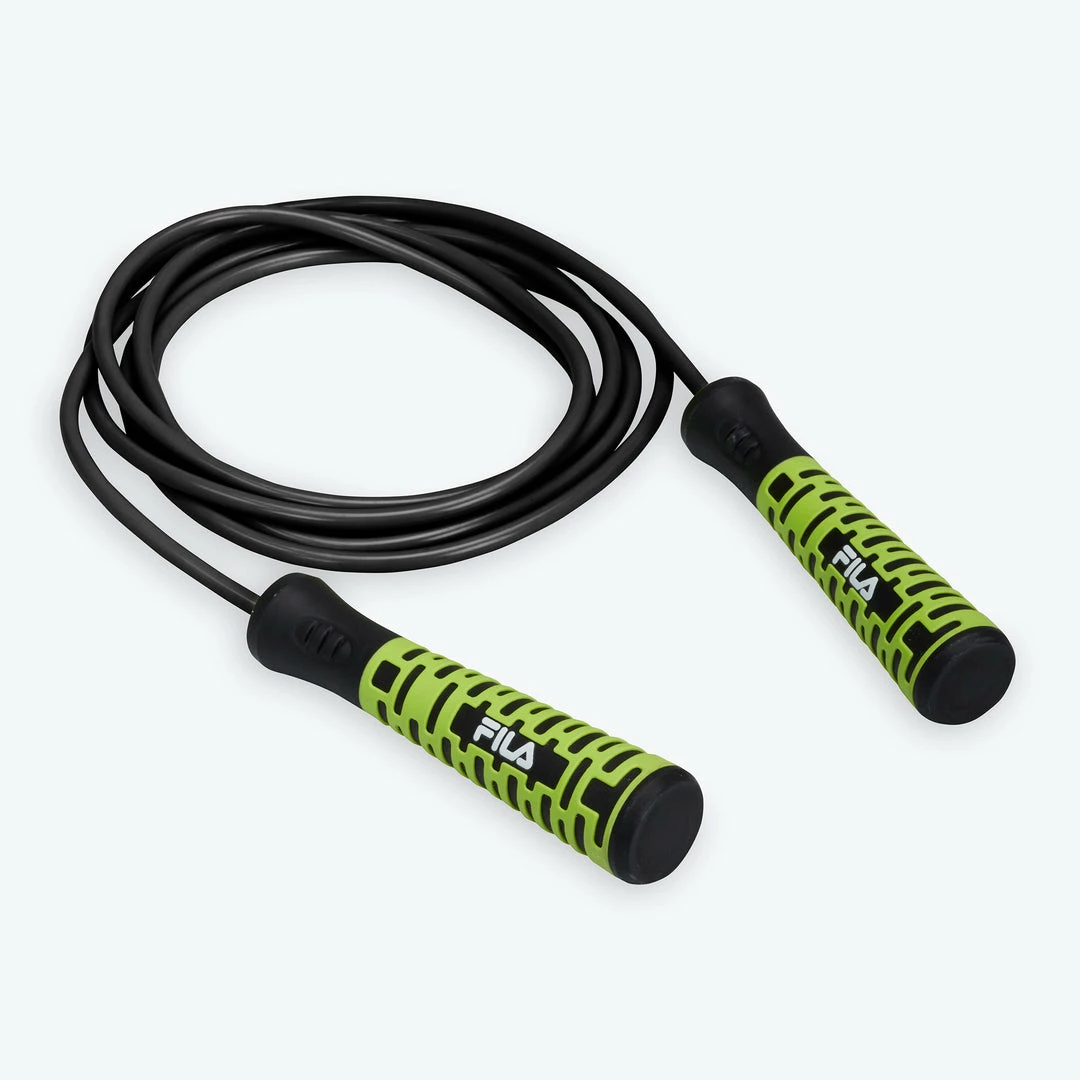 Get in a quick, fun and easy cardio workout with the FILA Cardio Speed Rope. This simple jump rope has the perfect weight for effortless momentum and grippy handles to keep your hands comfortable and prevent the rope from slipping when in use.Β It is made fromΒ PVC and nylon and has comfortable foam handles. At 9 feet long and just 0.54 pounds, you can easily throw it in any gym bag and bring with you on-the-go.