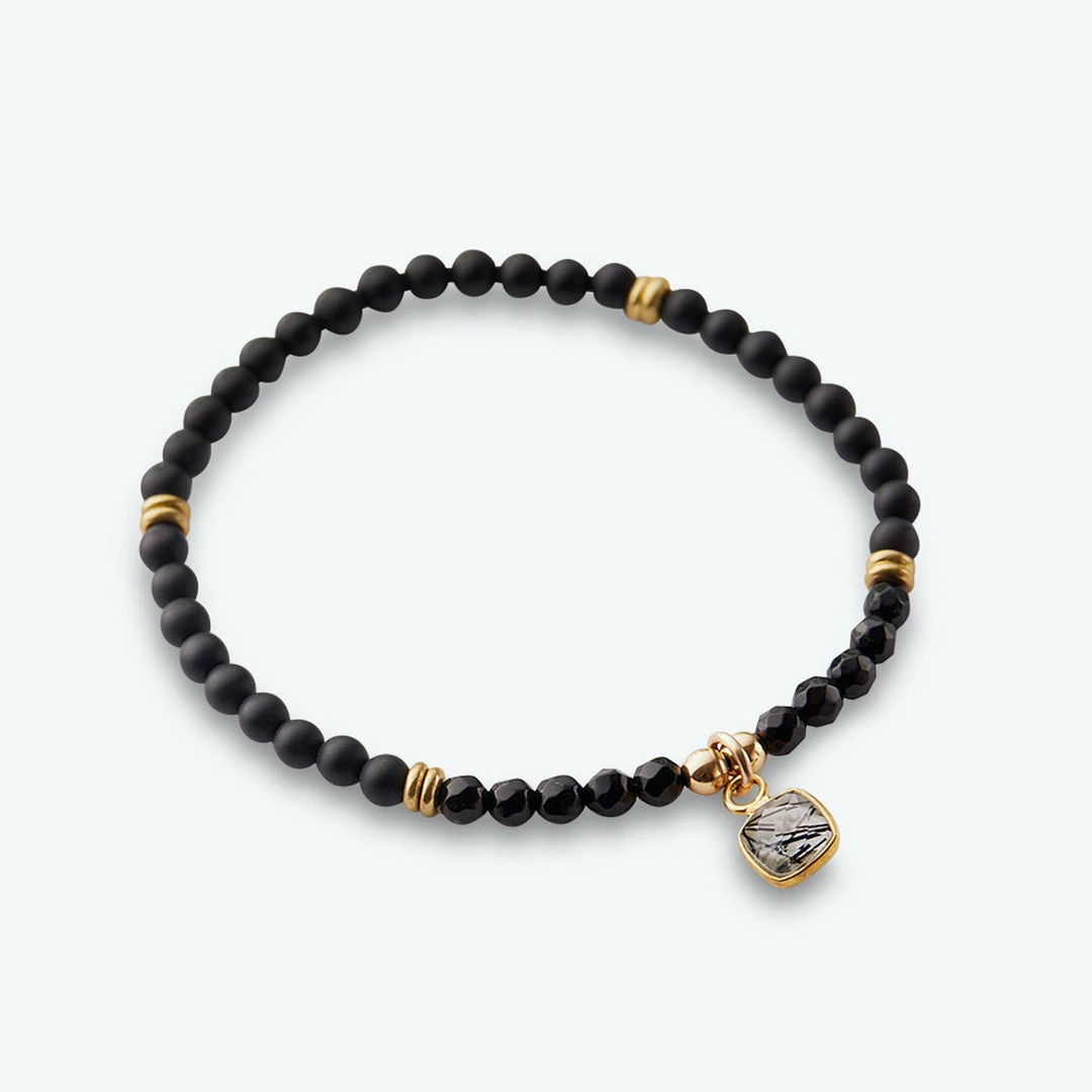 - Onyx bracelet with gold-plated black rutilated quartz charmΒ Β