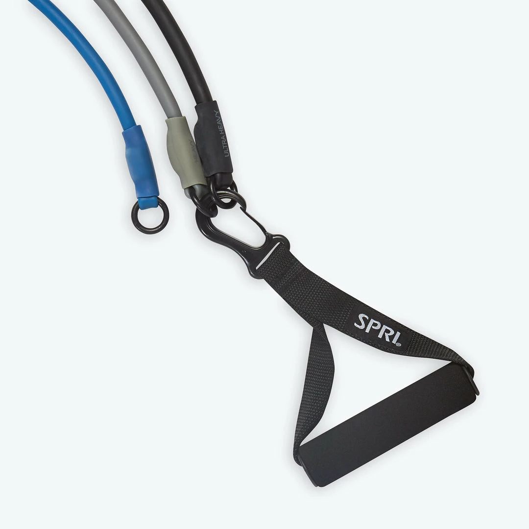 Use the SPRI 3-in-1 Resistance TubeKit to improve total body strength right from the comfort of your own home. The adjustable design allows for multiple resistance combinations as your strength progresses. Easily clip on and off the medium, heavy and ultra-heavyΒ resistance bands and use them individually or all together. The comfort-foam handles also provide a non-slip grip.Β