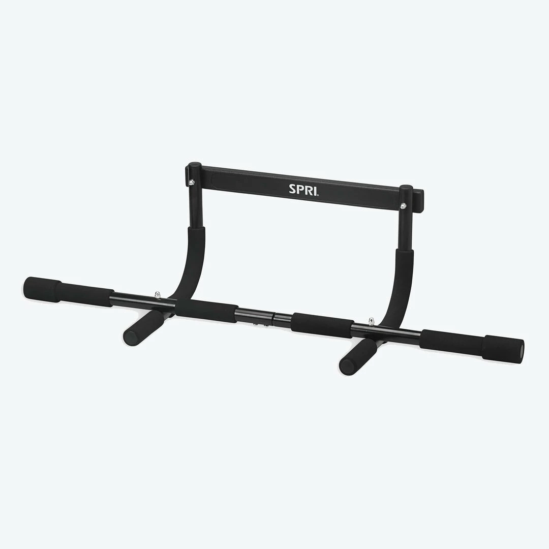 This professional-grade Premium Pull-Up Bar allows for 12 different grip positions for a variety of exercises. The pull-up bar is made with sturdy, heavy-gauge steel and foam covered handles for a comfortable grip. The bar supports up toΒ 250 pounds and fits doorways up to 32 inches wide. Downloadable exercise guide included.